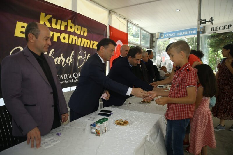 Recep Güven Parkında düzenlenen Kurban Bayramı bayramlaşma programına Kapaklı Kaymakamı Bayram Sağır, Kapaklı Belediye Başkanı Mustafa Çetin, kurum müdürleri, siyasi parti ve STK temsilcileri ile vatandaşlar katıldı. Burada bir konuşma yapan Başkan Çetin, “Tüm vatandaşlarımıza güzel bir bayram diliyorum. Bayramımız mübarek olsun.” dedi. Kaymakam Bayram Sağır da konuşmasında vatandaşların bayramını tebrik etti.
