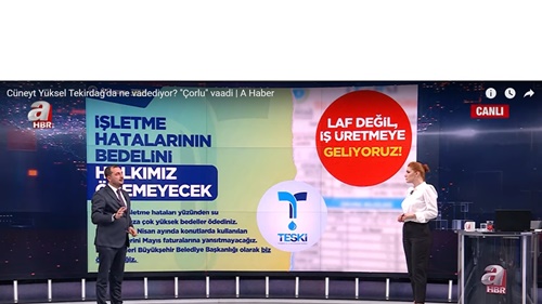 AK Parti Tekirdağ Büyükşehir Belediye Başkan Adayı Cüneyt Yüksel, A Haber canlı yayınında Memleket Meselesi programında projelerini anlattı. Yüksel, “Tekirdağ’da milattan önce bir belediye anlayışı var” ifadelerini kullandı. “Tekirdağ’da suya indirim olacak” diyen Yüksel, Çorlu için vaadini açıkladı.