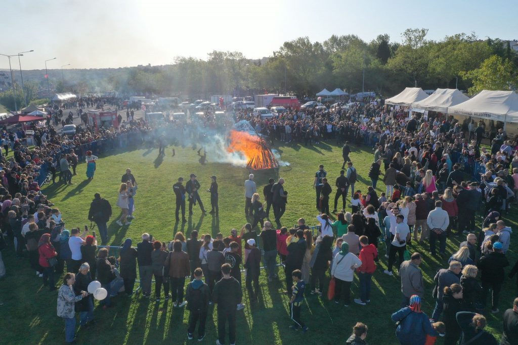 Sahil dolgu alanına varıldığında ise Kakava ateşi yakıldı. Dev alevlerin etrafında toplanan kalabalık, müzik eşliğinde halay çekerek baharın gelişini kutladı. Şenlikte, halk oyunları gösterileri de büyük beğeni topladı. Renkli kostümleriyle sahneye çıkan halk oyunları ekipleri, izleyicilerden yoğun alkış aldı.
